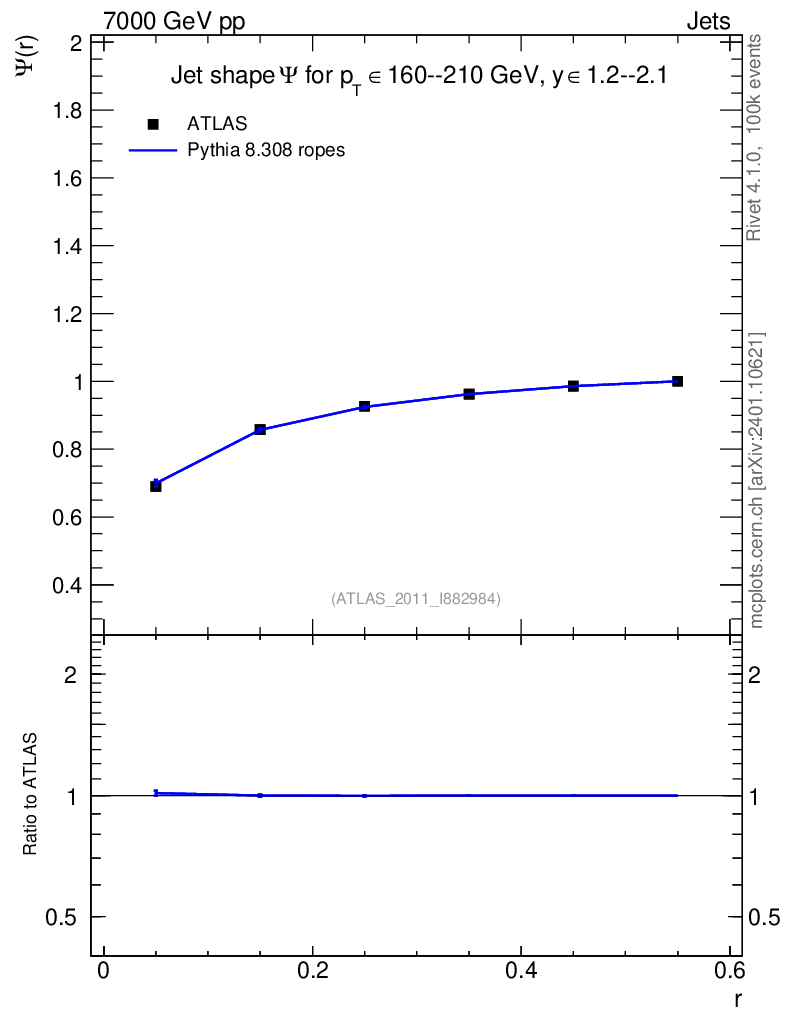 Lines: data, pythia8 8.308 ropes |