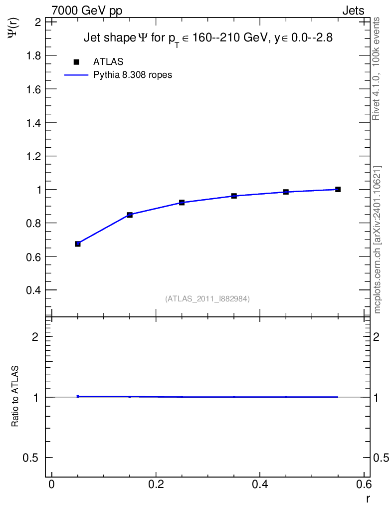 Lines: data, pythia8 8.308 ropes |