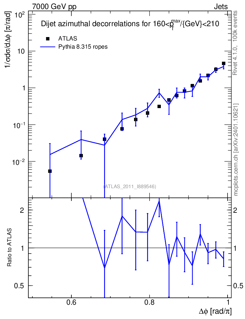 Lines: data, pythia8 8.315 ropes |