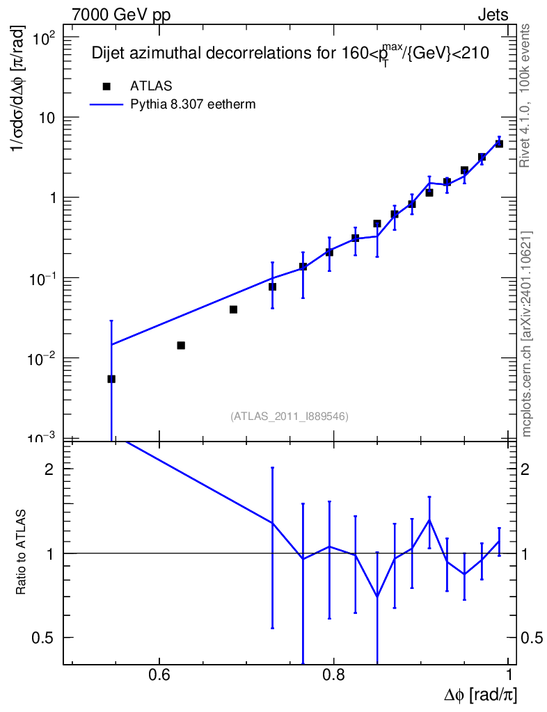 Lines: data, pythia8 8.307 eetherm |