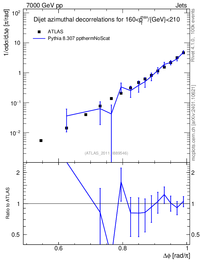 Lines: data, pythia8 8.307 ppthermNoScat |