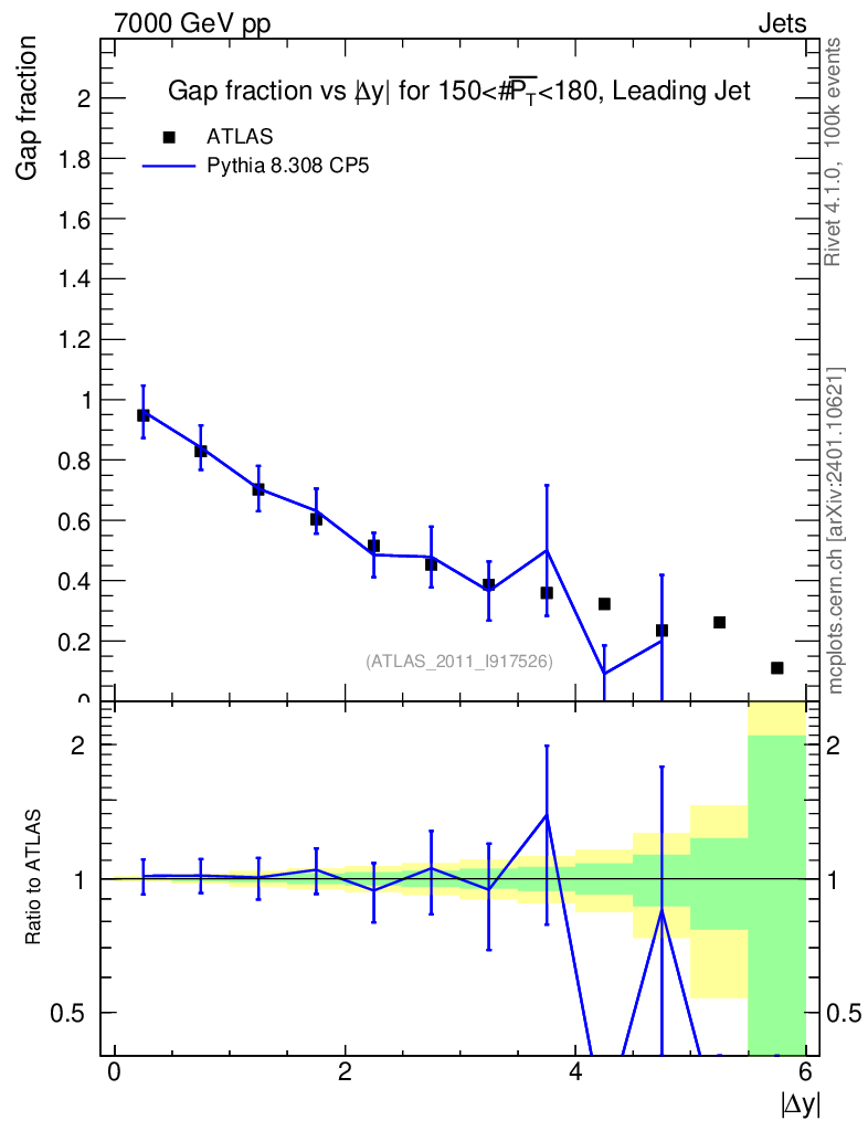 Observable: Gap fraction vs Δy (LJ)