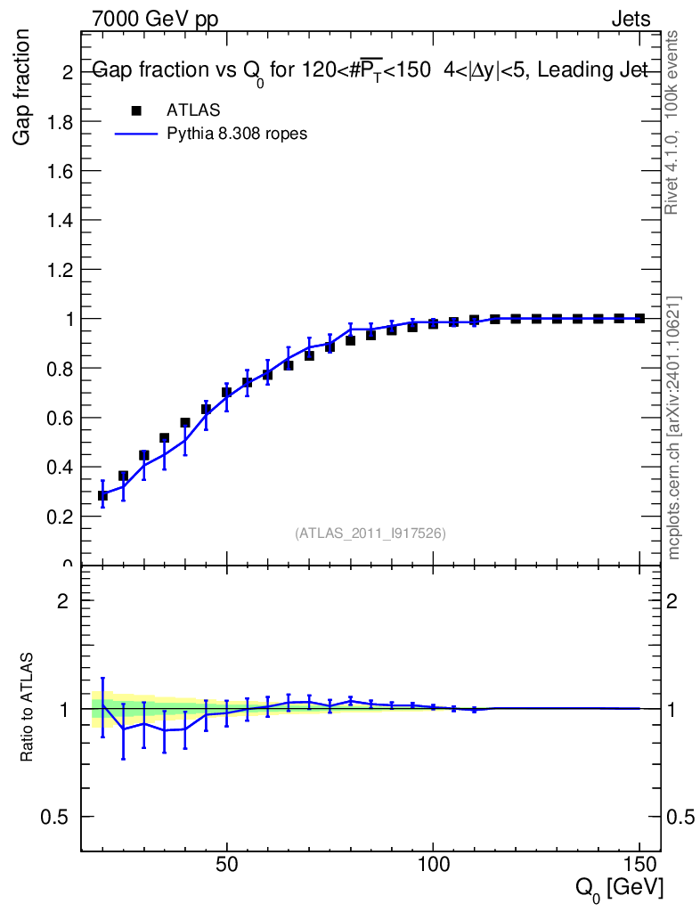 Lines: data, pythia8 8.308 ropes |