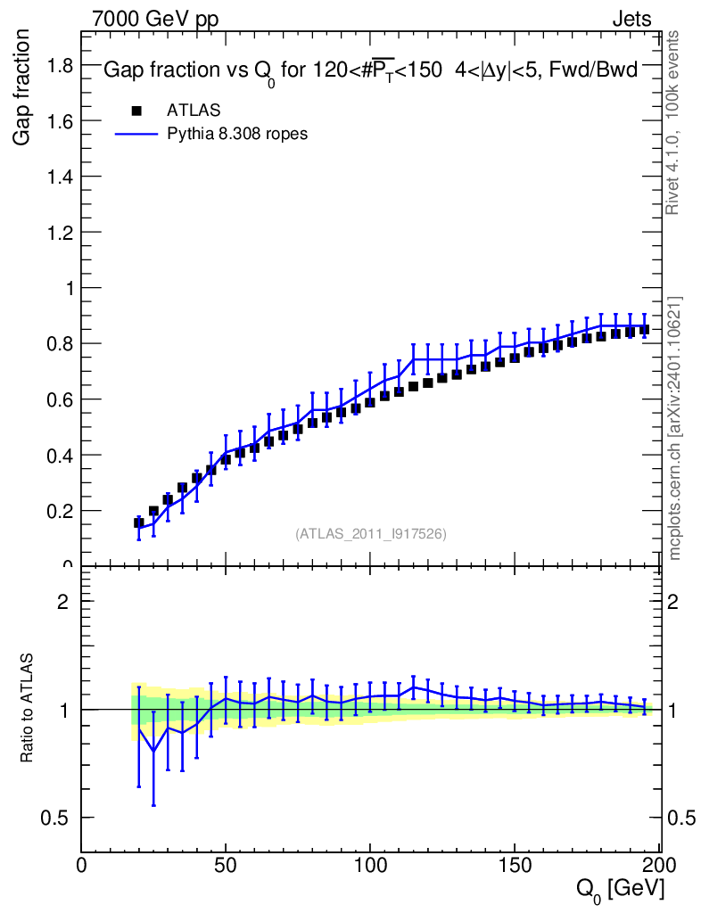 Lines: data, pythia8 8.308 ropes |