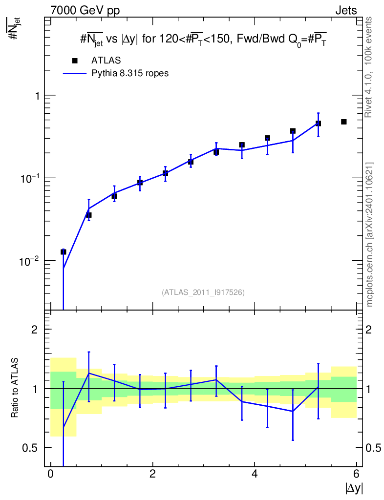 Lines: data, pythia8 8.315 ropes |