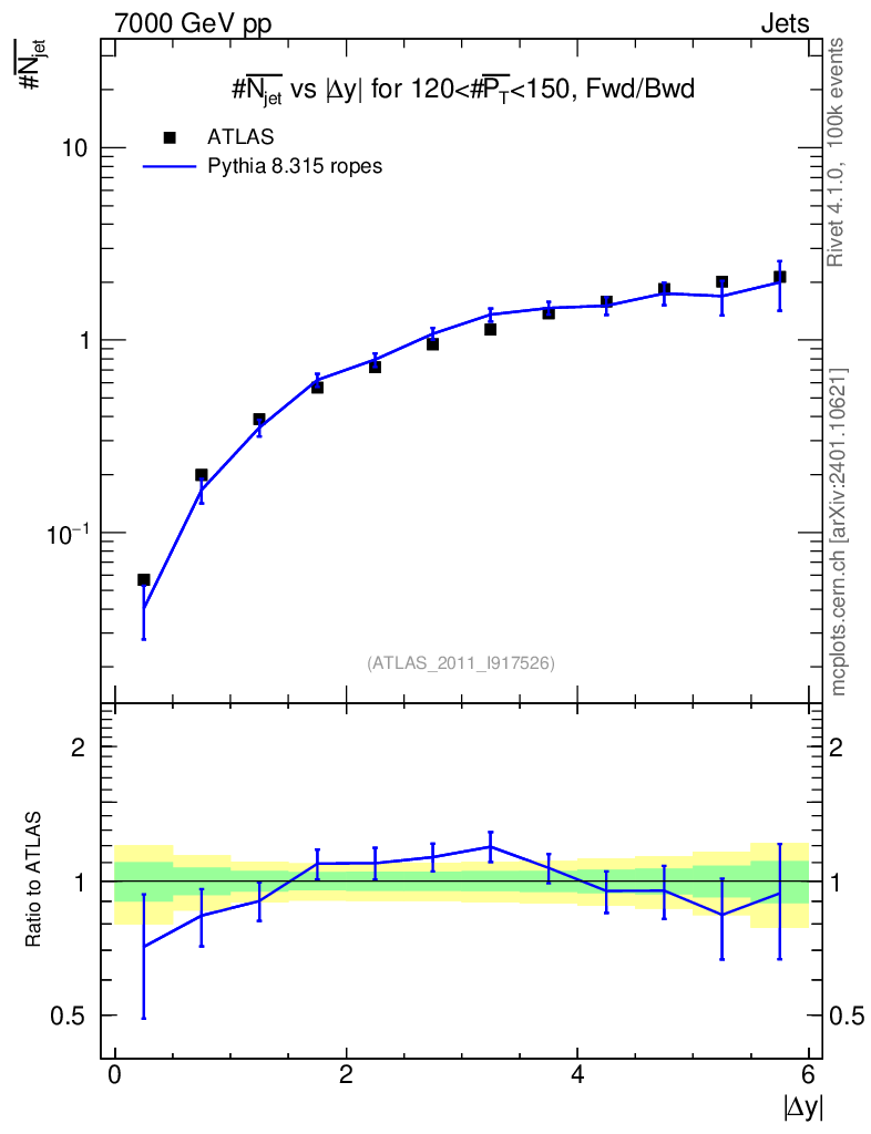 Lines: data, pythia8 8.315 ropes |