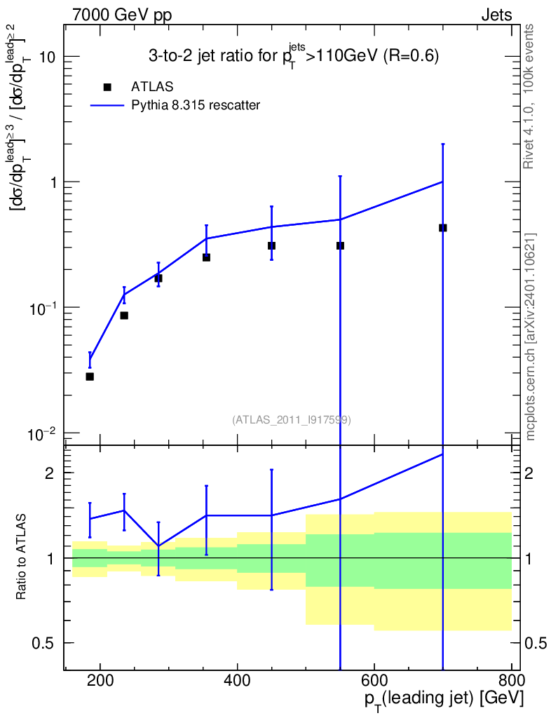 Lines: data, pythia8 8.315 rescatter |