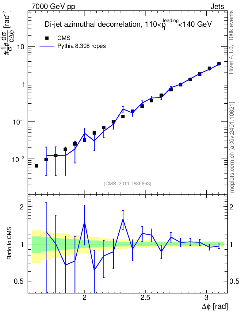 Lines: data, pythia8 8.308 ropes |