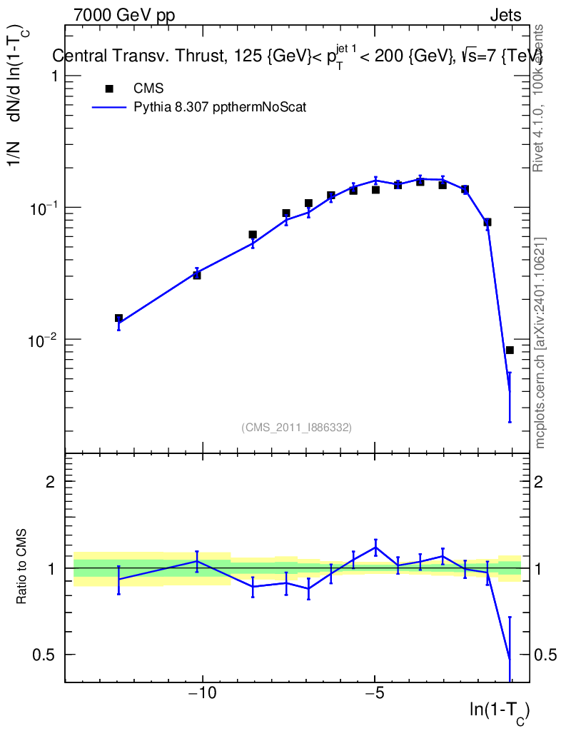 Lines: data, pythia8 8.307 ppthermNoScat |