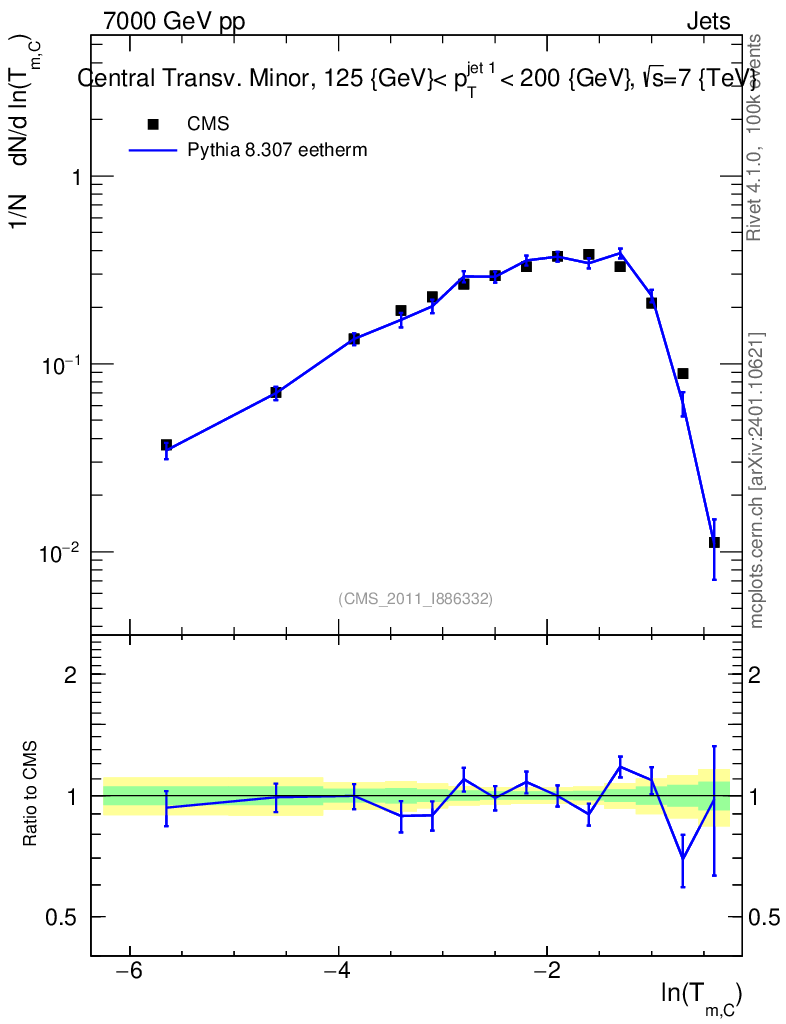 Lines: data, pythia8 8.307 eetherm | compare with other tunes