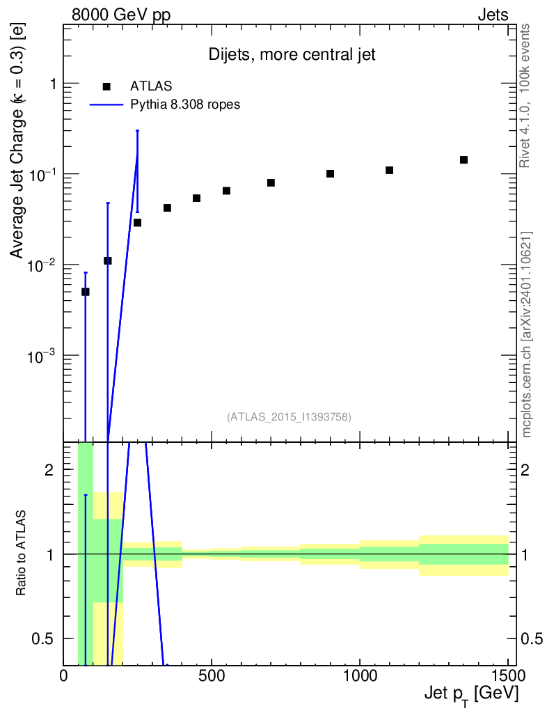 Lines: data, pythia8 8.308 ropes |