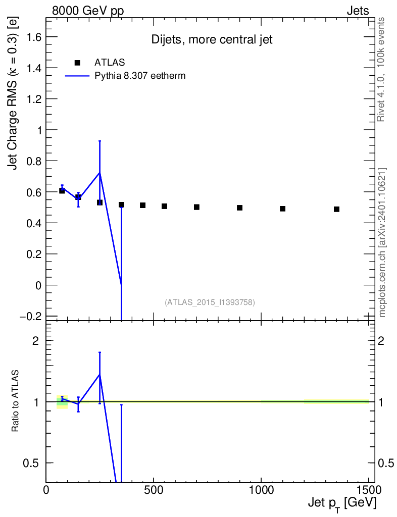 Lines: data, pythia8 8.307 eetherm |