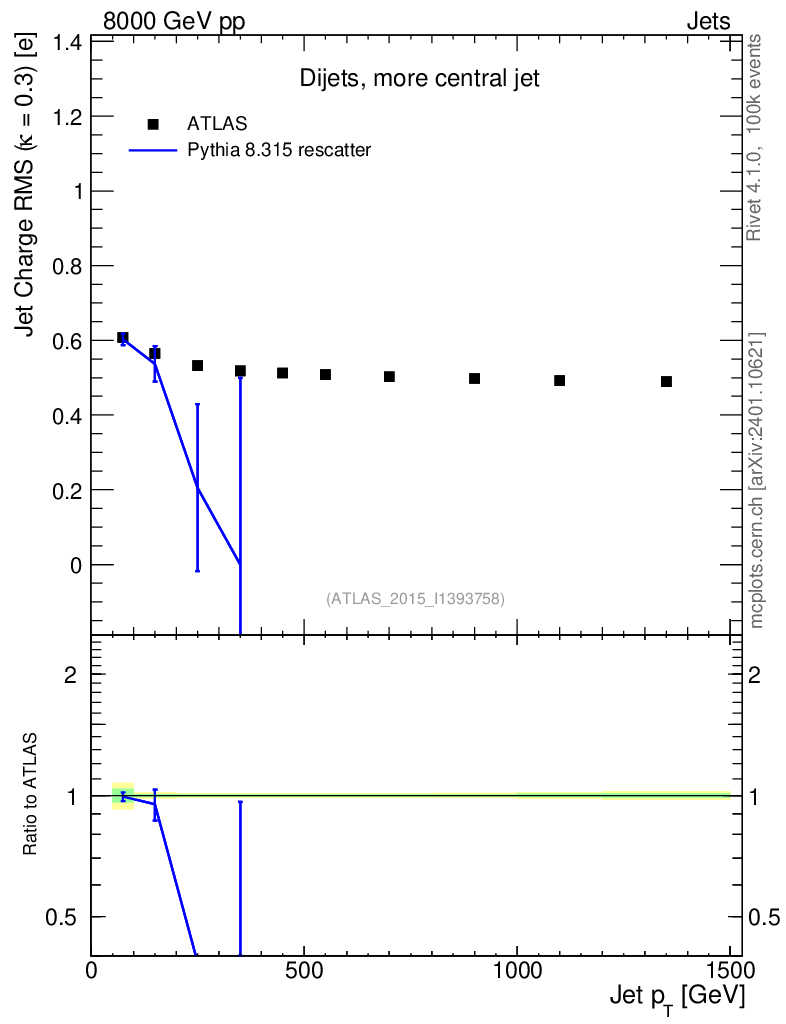 Lines: data, pythia8 8.315 rescatter |