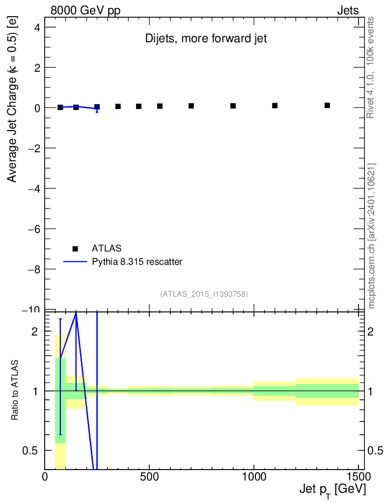 Lines: data, pythia8 8.315 rescatter |