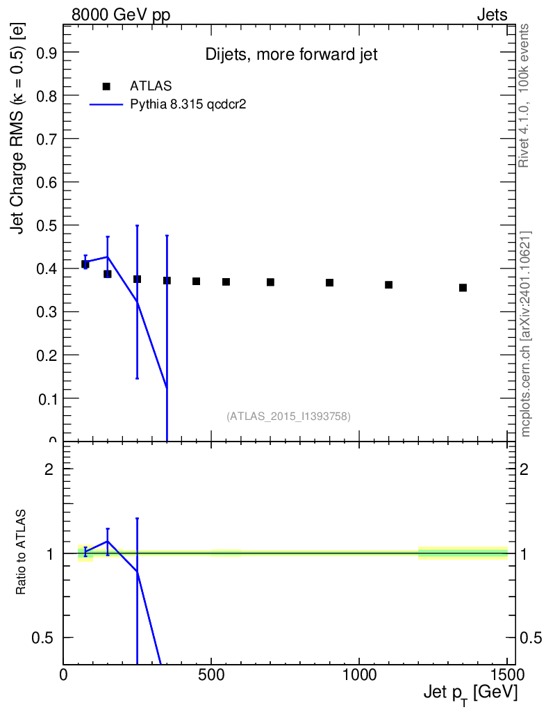Lines: data, pythia8 8.315 qcdcr2 |