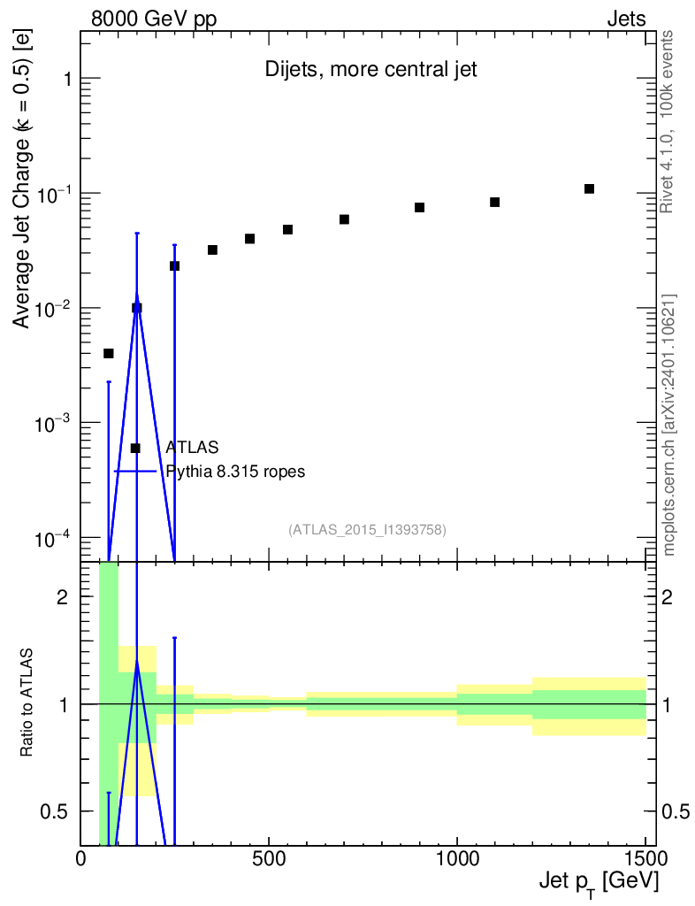 Lines: data, pythia8 8.315 ropes |