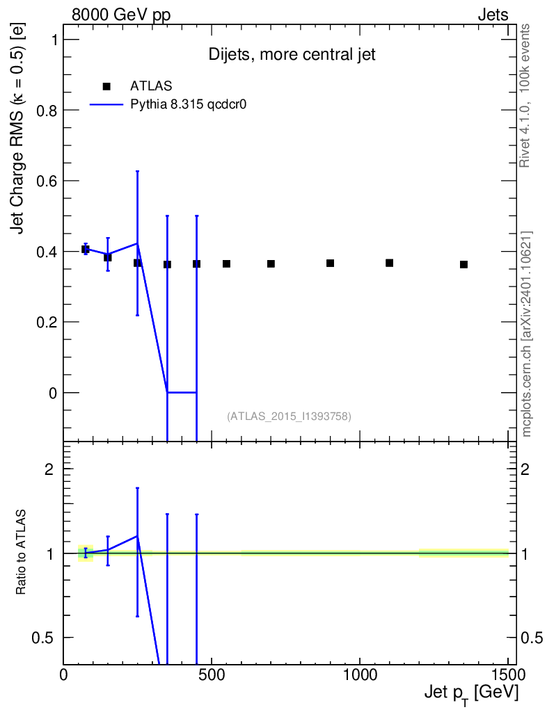 Lines: data, pythia8 8.315 qcdcr0 |