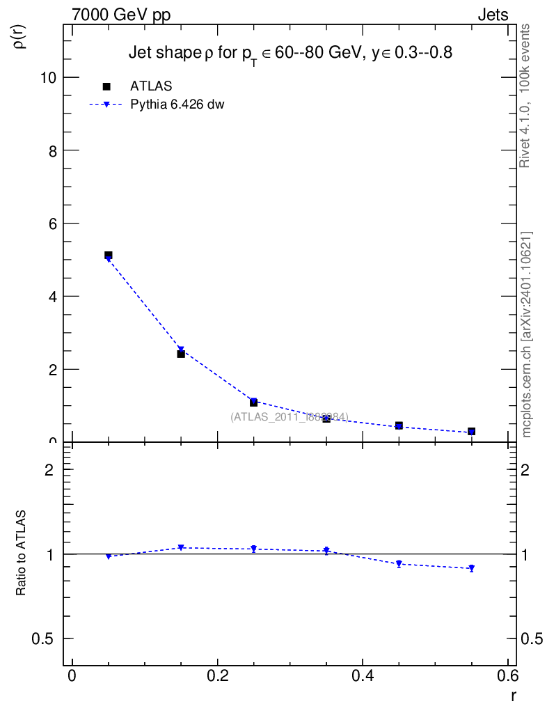 Lines: data, pythia6 6.426 dw | compare with other tunes