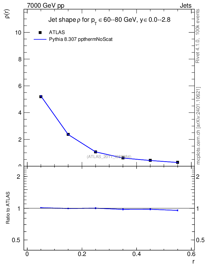 Lines: data, pythia8 8.307 ppthermNoScat |