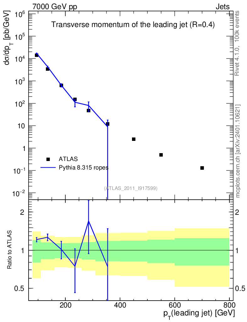 Lines: data, pythia8 8.315 ropes |