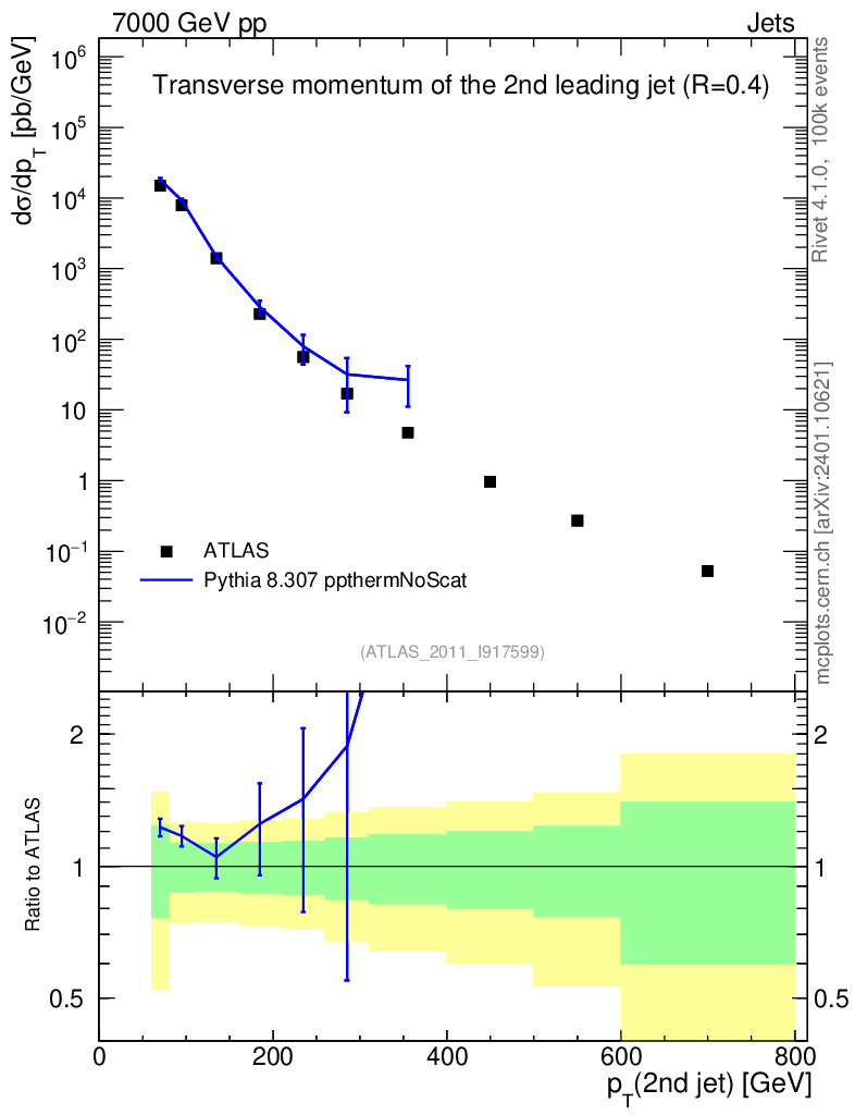 Lines: data, pythia8 8.307 ppthermNoScat |
