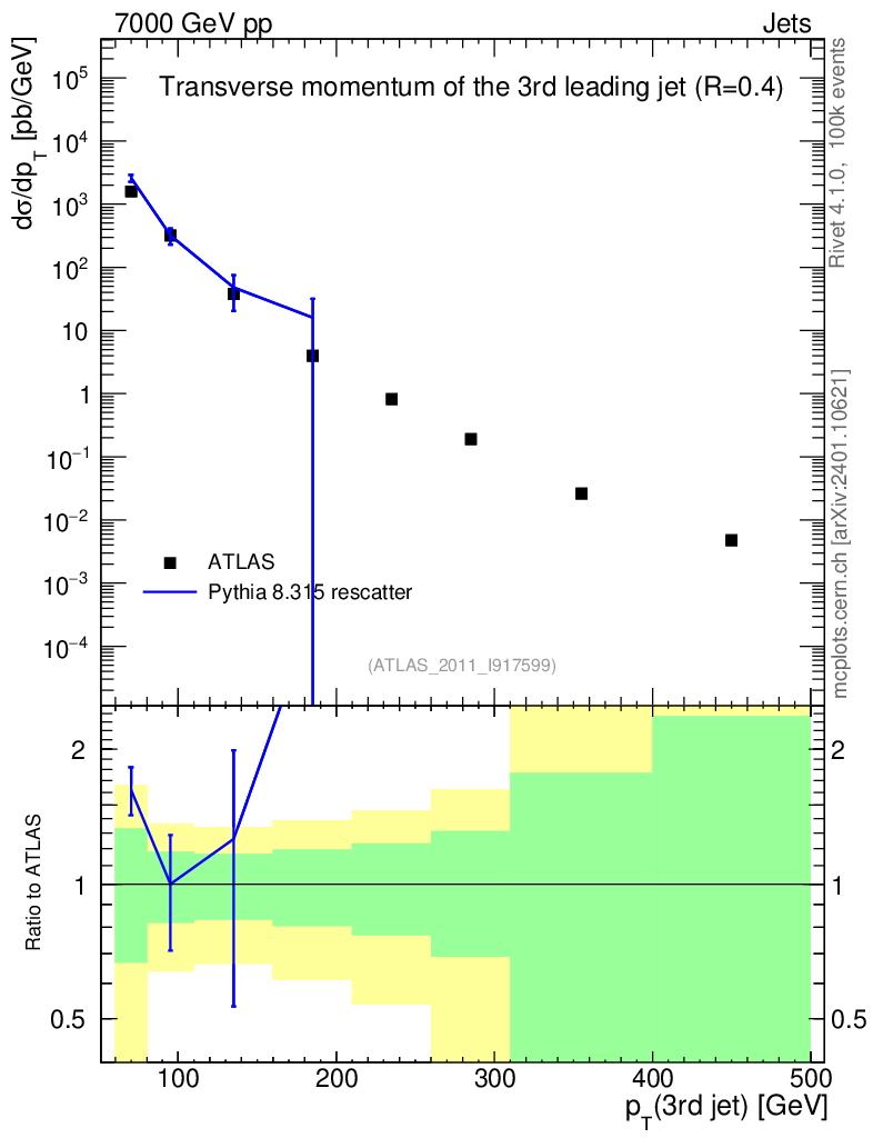 Lines: data, pythia8 8.315 rescatter |