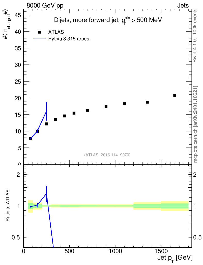 Lines: data, pythia8 8.315 ropes |