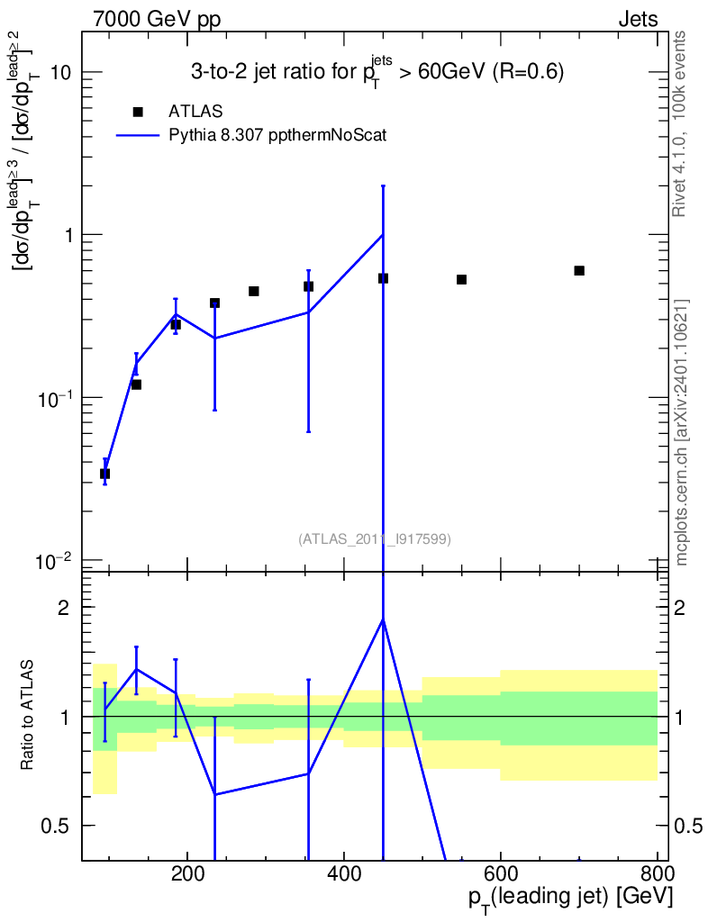 Lines: data, pythia8 8.307 ppthermNoScat |