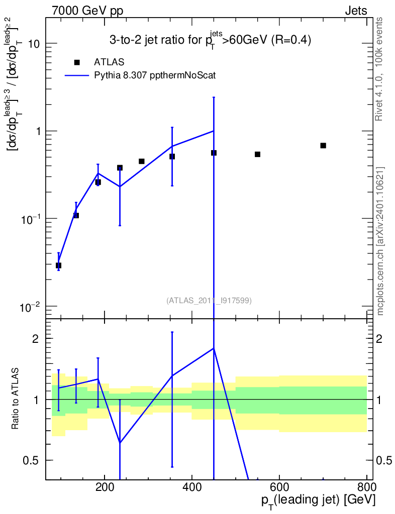 Lines: data, pythia8 8.307 ppthermNoScat |