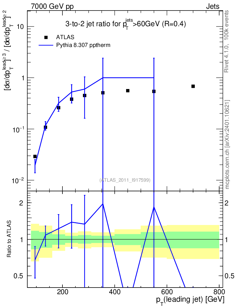 Lines: data, pythia8 8.307 pptherm |