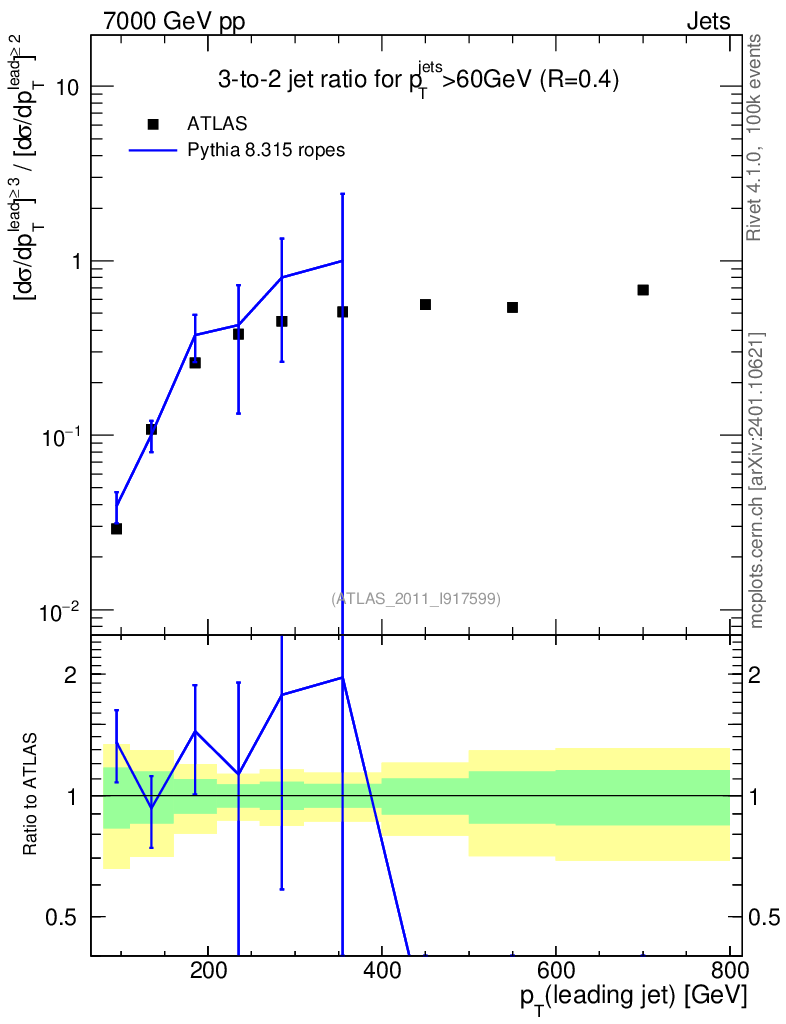Lines: data, pythia8 8.315 ropes |