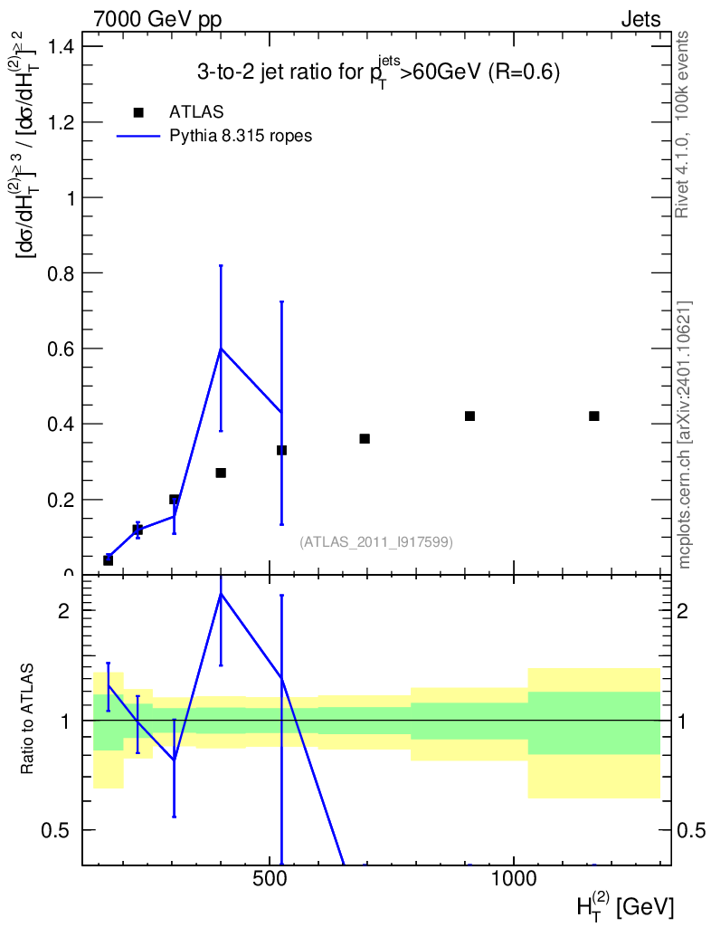 Lines: data, pythia8 8.315 ropes |