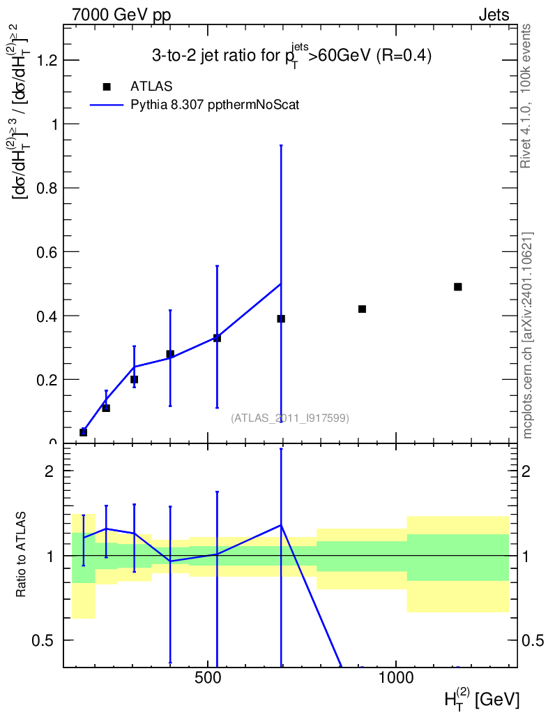 Lines: data, pythia8 8.307 ppthermNoScat |