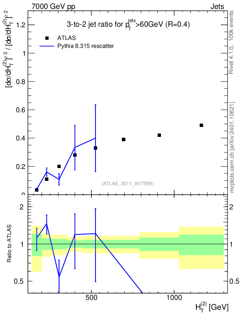 Lines: data, pythia8 8.315 rescatter |
