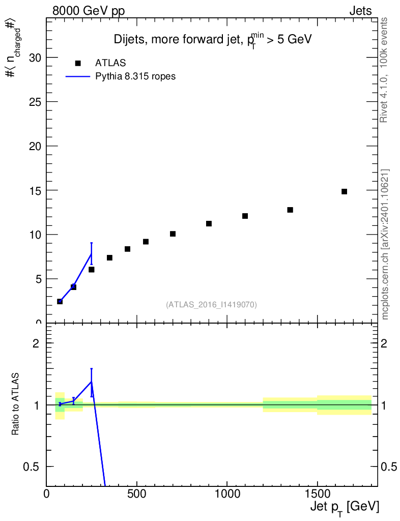 Lines: data, pythia8 8.315 ropes |