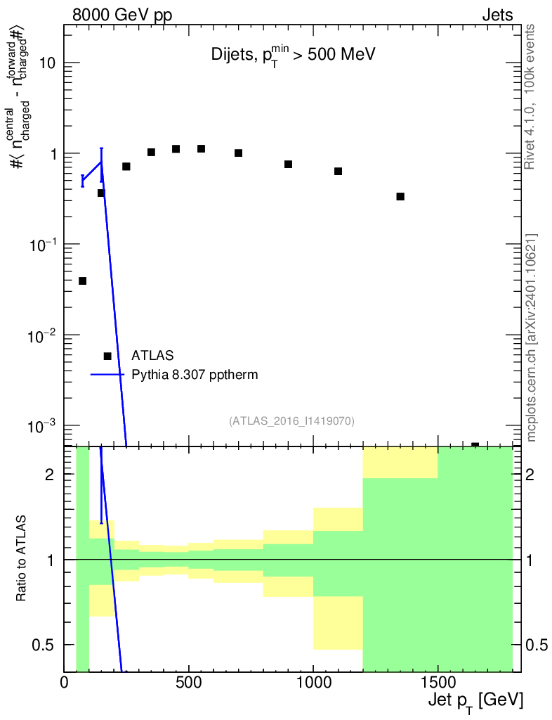 Lines: data, pythia8 8.307 pptherm |