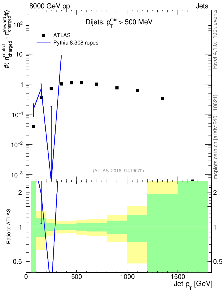 Lines: data, pythia8 8.308 ropes |