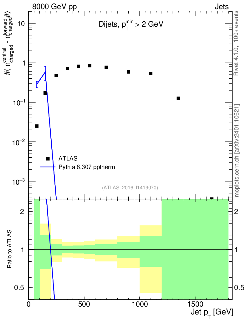 Lines: data, pythia8 8.307 pptherm |