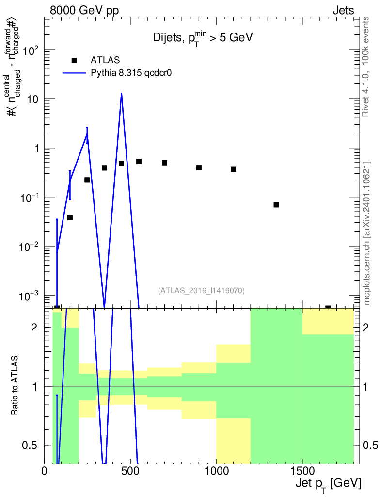 Lines: data, pythia8 8.315 qcdcr0 |