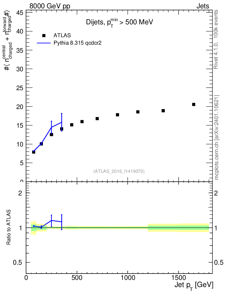 Lines: data, pythia8 8.315 qcdcr2 |