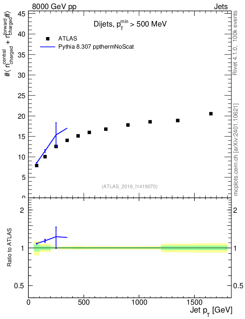 Lines: data, pythia8 8.307 ppthermNoScat |