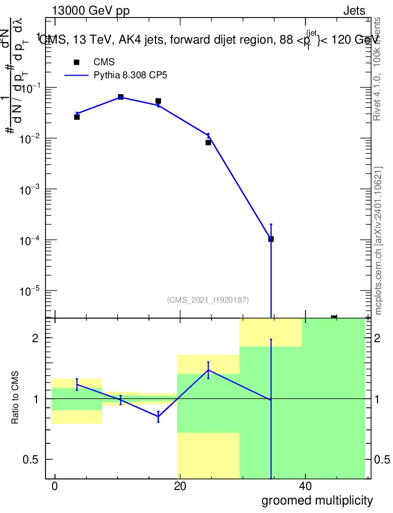 Lines: data, pythia8 8.308 CP5 |