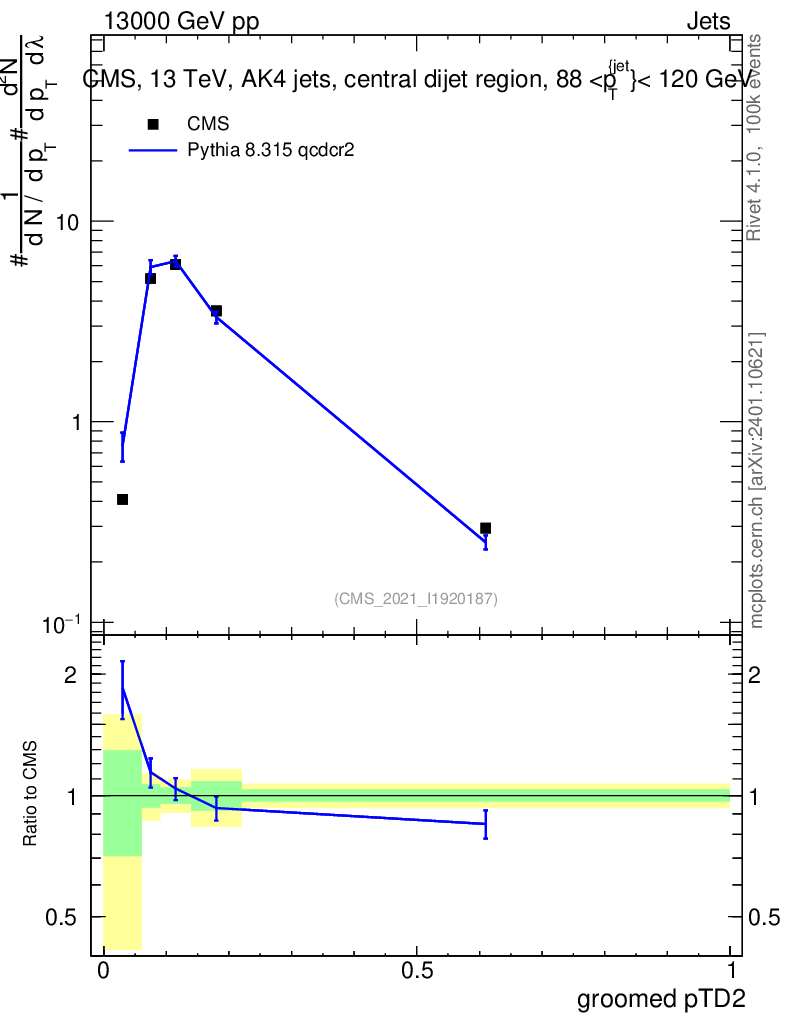 Lines: data, pythia8 8.315 qcdcr2 |