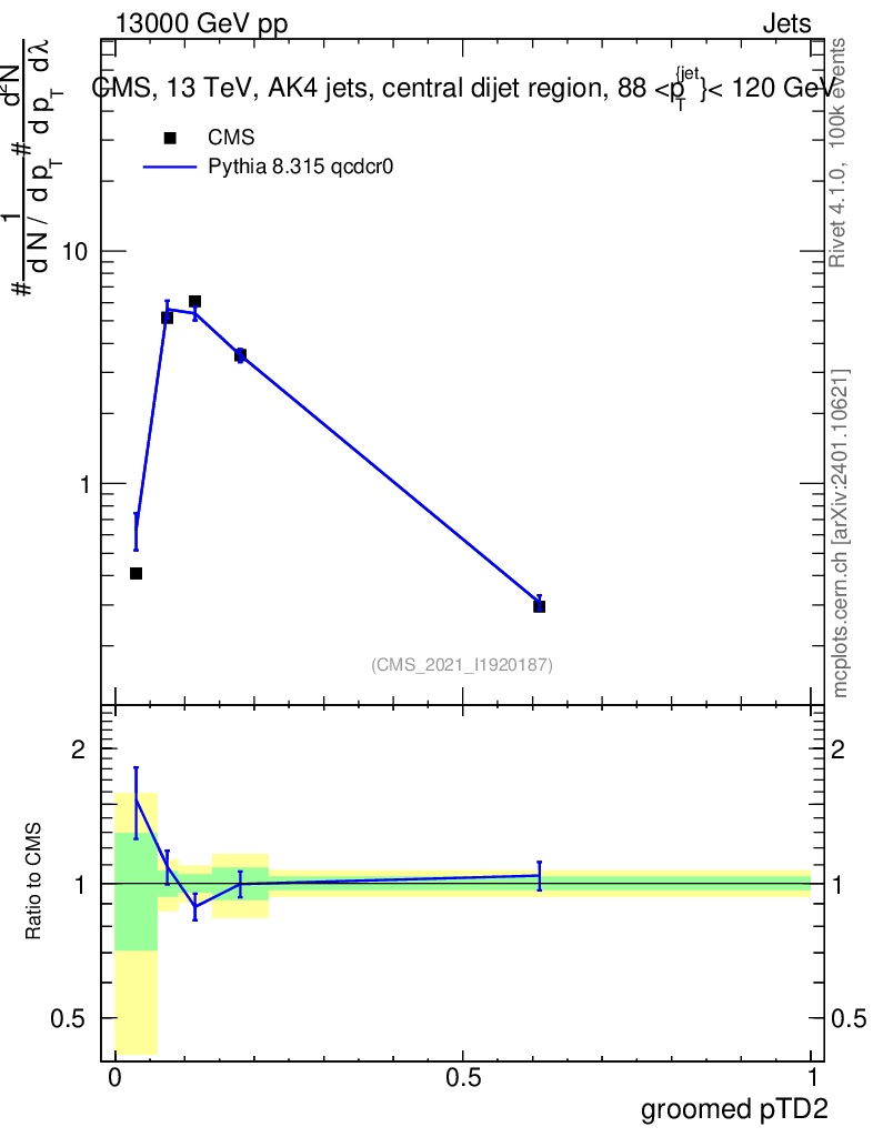 Lines: data, pythia8 8.315 qcdcr0 |