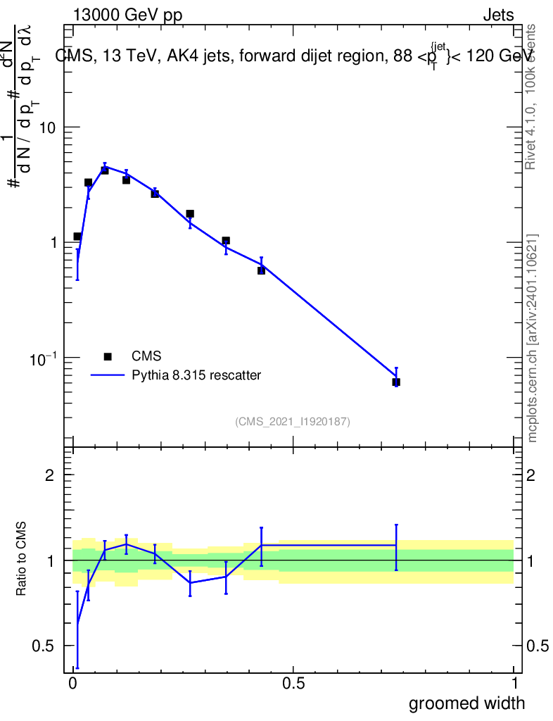 Lines: data, pythia8 8.315 rescatter |