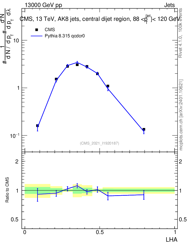 Lines: data, pythia8 8.315 qcdcr0 |