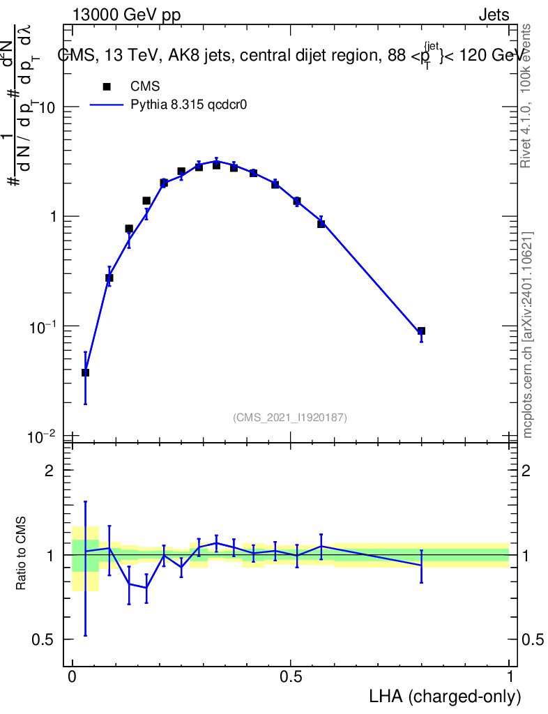 Lines: data, pythia8 8.315 qcdcr0 |