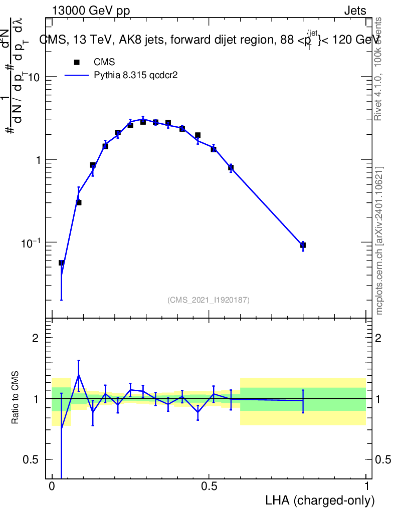 Lines: data, pythia8 8.315 qcdcr2 |