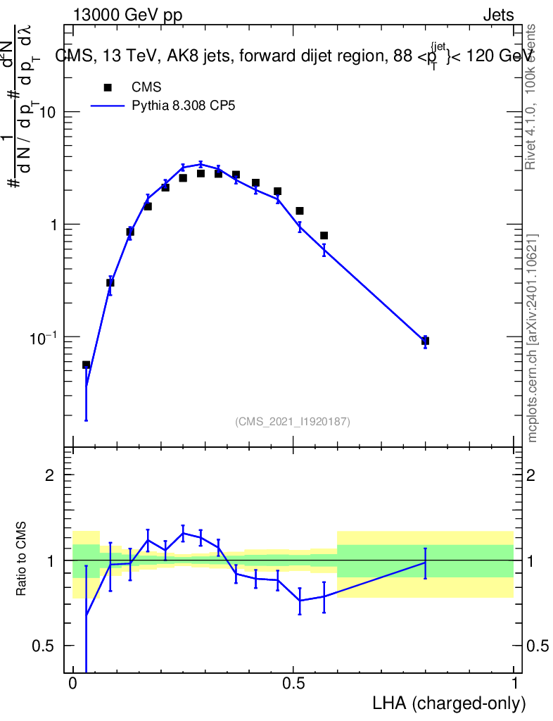 Lines: data, pythia8 8.308 CP5 |