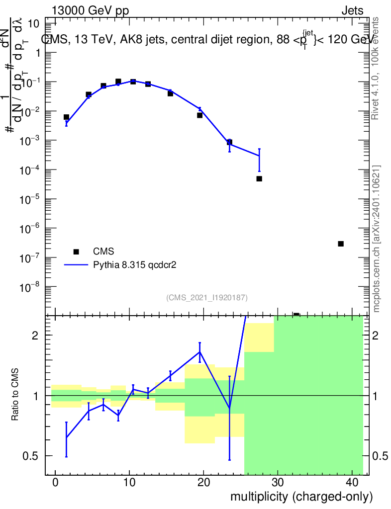 Lines: data, pythia8 8.315 qcdcr2 |